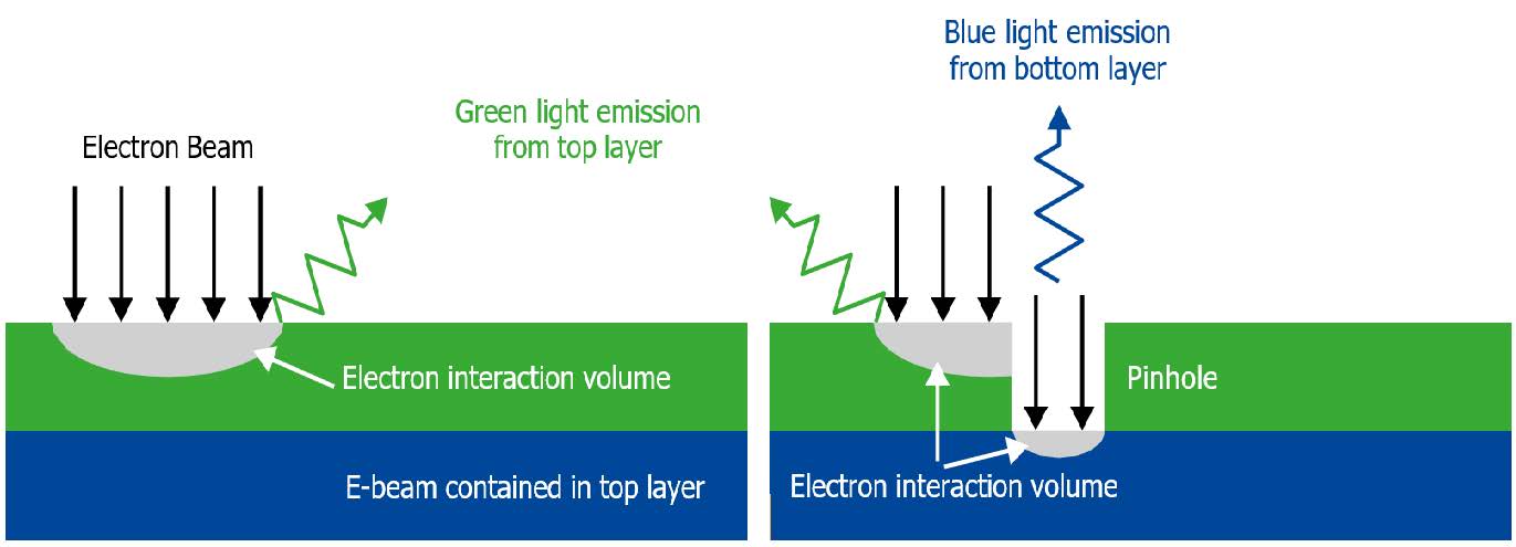 CL通過檢測來自底層的光來檢測針孔,如下圖所示: