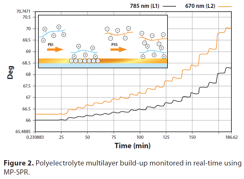 122024-07 多參數(shù)表面等離子體共振(MP-SPR)可以在不知道薄膜厚度和折射率的前提下測定薄膜的厚度和折射率。采用MP-SPR雙波長法對聚電解質(zhì)多層進行測量,并采用LayerSolver?軟件模塊進行分析。發(fā)現(xiàn)5層雙層膜...