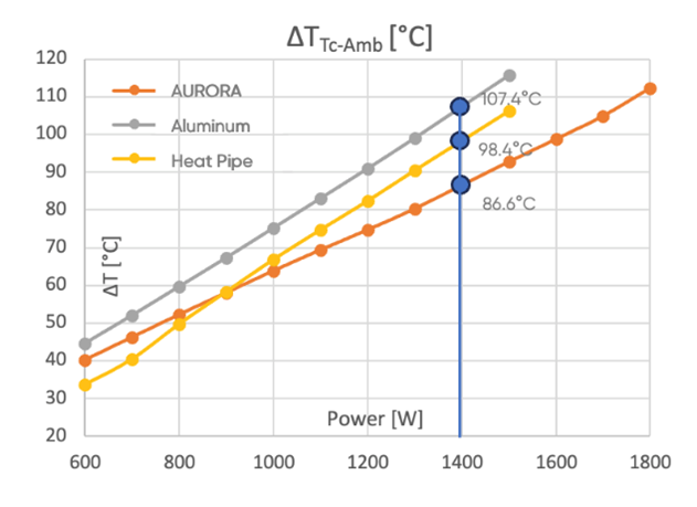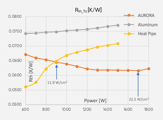 2、對(duì)于更高功率水平和密度的半導(dǎo)體模塊,AURORA比其他技術(shù)散熱性能更好。